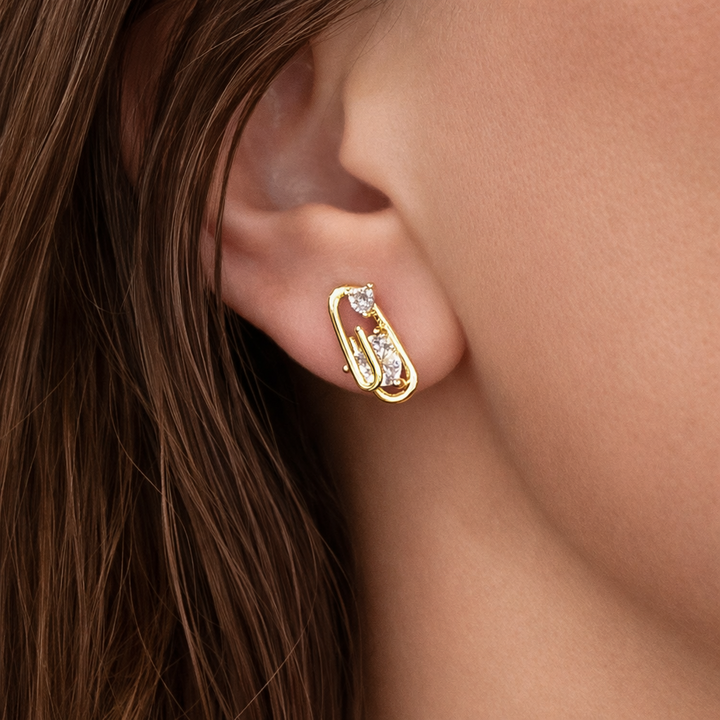 მოოქროვილი ტიტანის თეთრი საყურეები ქვებით