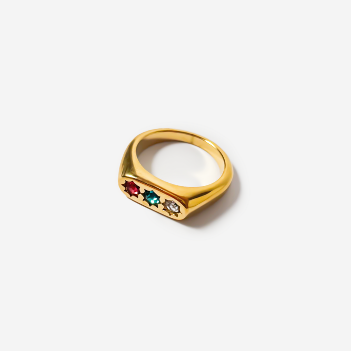 Gold-plated Titanium Colorful With Stones Ring
